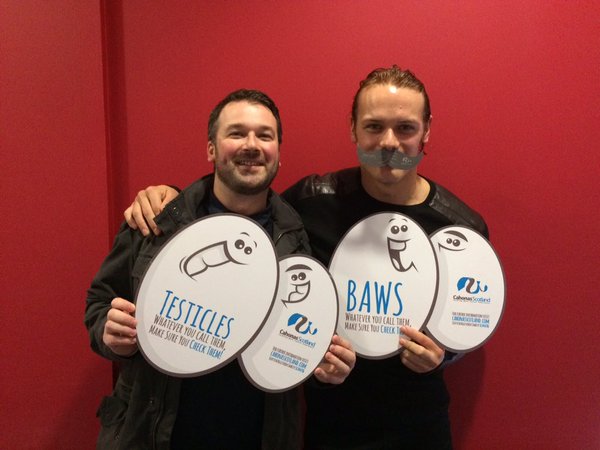 Sam also mobilized tens of thousands of fans to support Cahonas Scotland’s successful bid for a £32,000 award from Microsoft to continue their work of raising awareness of Male Cancers. On top of that he does public events and announcements for the testicular cancer advocacy organization.