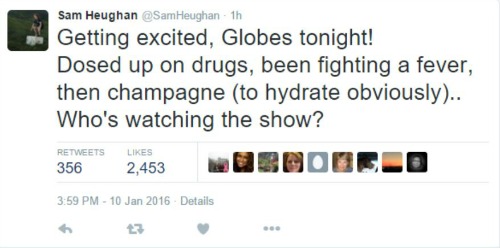 — Sam Heughan (@SamHeughan) January 11, 2016