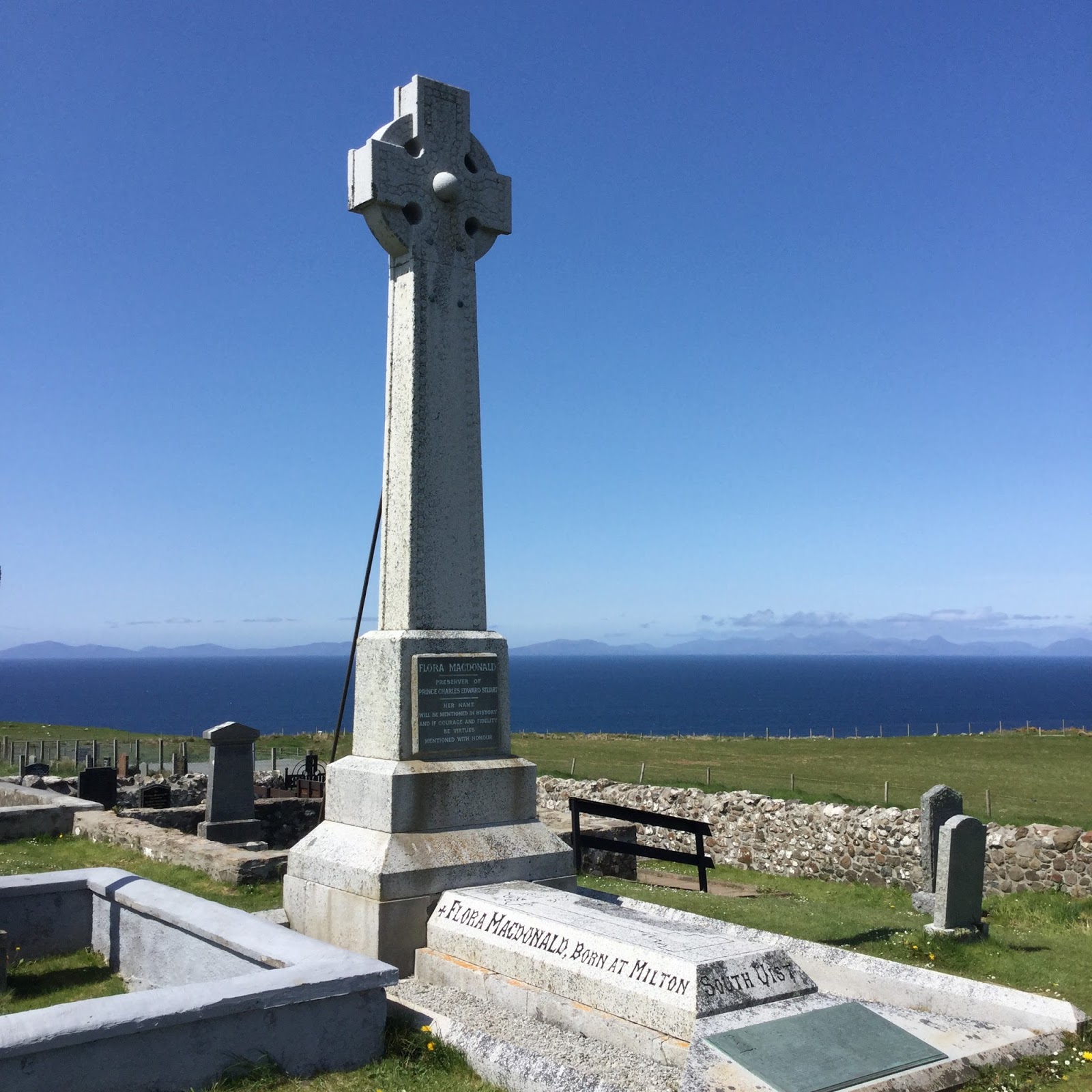 After this amazing experience, we continued our trek around the island. We stopped to pay our respects to Flora MacDonald, the young woman who aided Bonnie Prince Charlie’s escape after the Battle of Culloden. She is buried at the cemetery in the village of Kilmuir. Kilmuir is the only place (outside of the western islands) where Scottish Gaelic is spoken by at least half the population. Her gravestone is quite grand and reflects the important part she played in Scottish history after the rising and subsequent clearances of 1745. Her gravestone is marked with the following – “…a name that will be mentioned in history, and if courage and fidelity be virtues, mentioned with honour…”