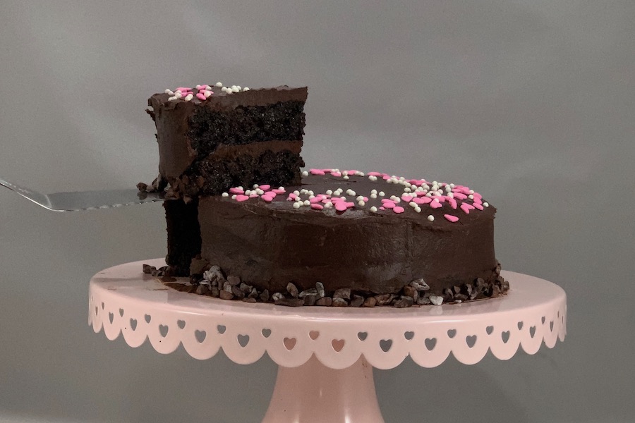 - Decorate the cake as desired. You can whip some of the ganache and pipe roses on top, or use sprinkles and cocoa nibs to decorate.