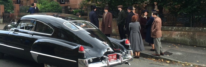 The extras started to assemble in their gorgeous 1940s outfits and hairstyles. They were being primped and instructed and were practicing their moves, up and down the street. Then the cars started to arrive. Amazing 1940s cars in pristine condition were driven into the street. It really was beginning to feel like we had gone back in time.