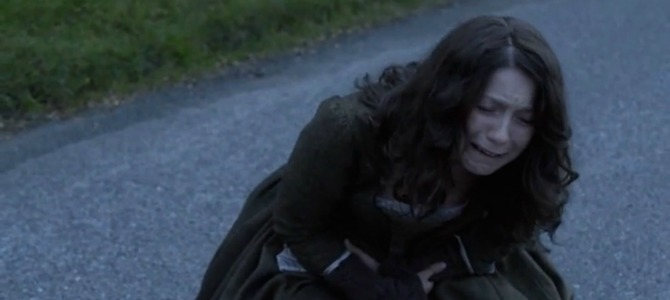 The love, devotion, and bravery would easily stand on their own, but Diana gave us just a bit more with the visual of Claire’s breaking heart. While we don’t hear those words in the show we do see an anguished Claire in the middle of the road after returning through the stones. She’s on her knees, clutching her stomach, and screaming… a primal sort of scream… the kind of scream that could only come from one who has just lost everything. Each time I watch that scene I have a deep appreciation for the show writers who didn’t give us the words, but gave us the feelings, nonetheless.