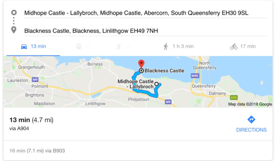 Side note: there is a coastal path from Abercorn (near Midhope) to Blackness. It takes about 45 minutes, and is a lovely walk along the foreshore through a flat-wooded pathway. Look for the signs to Abercorn and go through the gate on the corner of a high stonewall, to the public path. Here you will also see Abercorn Church, which will be featured in Outlander Season 4. They were doing some filming there, but I’m not sure what scenes they were.