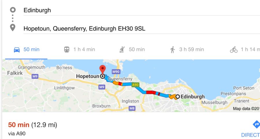 Set your GPS for Hopetoun House, but in this case be very careful not to use the postcode on the Hopetoun House website as that takes you to the locked gate at the back of the estate. You can guess how I know that, right? Be careful that you are setting it for Hopetoun House in South Queensferry because the route is quite circuitous through a little village, under a big bridge and through a housing estate so it is easy to feel that you might be getting lost.