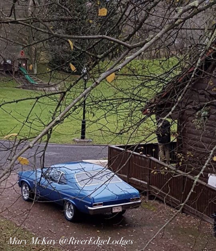 They had various meetings with the film location team, then one day about 20 people turned up in sleek black vehicles, wearing black puffa jackets and black shades. She says it was like a scene from Men in Black! They spent ages looking inside and outside the lodges. Next they were presented with a document several pages long of what the team wanted to do to the lodges, inside and out. The attention to detail was impressive, including covering the kitchen units with period tiles and painting the walls, replacing curtains and blinds, covering up light switches etc etc.