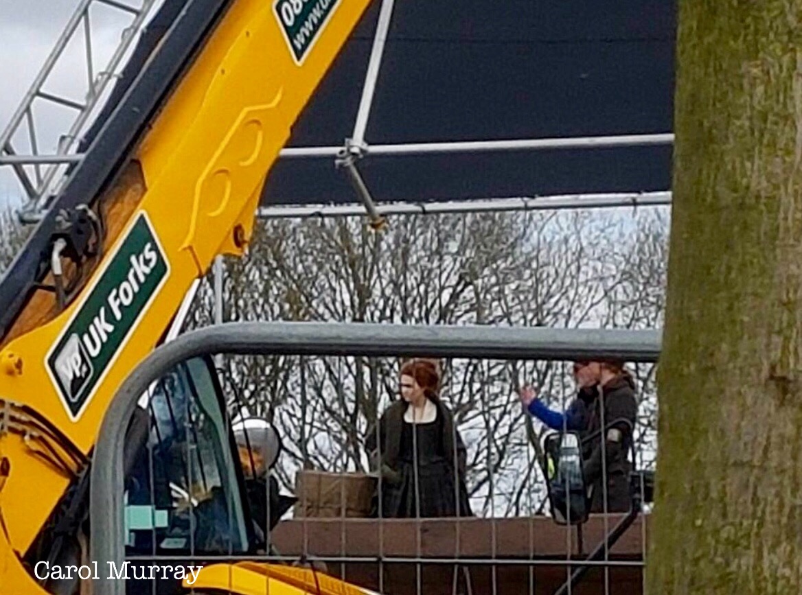 The trip up river to Cross Creek on the Sally-Anne was less dramatic this time. No killings, thank goodness. Again, these scenes were shot in the car park of the studio, with Lizzie making google eyes at Ian … or maybe Rollo? Local fan Carol Murray just happened by the studio the day they were filming these scenes in the car park.