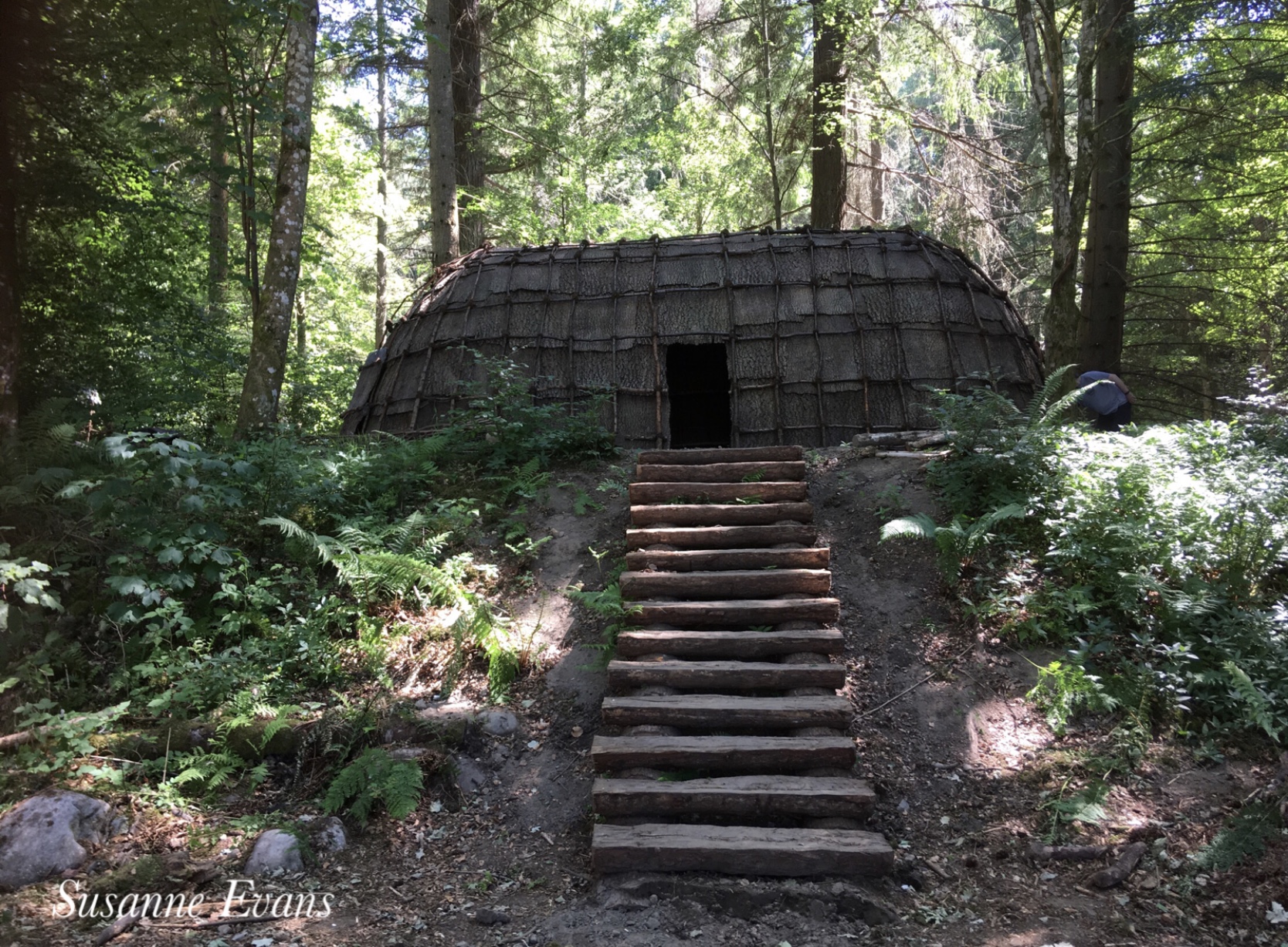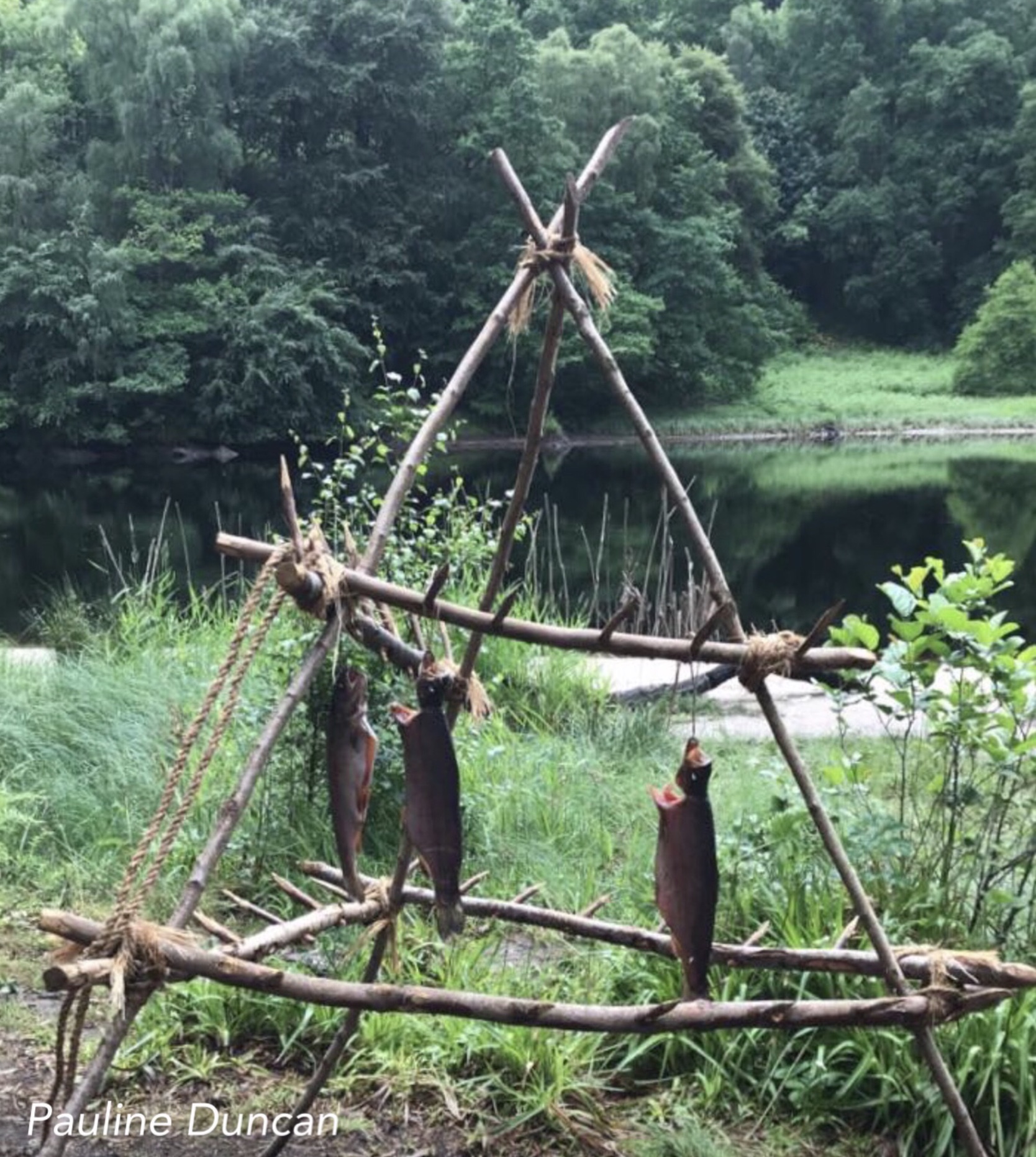 On the days before we were there, Matthew, Susanne Evans and Pauline Duncan (of Northlands B and B in Pitlochry) each went and got some amazing close-ups of the village dwellings, including fabulous details of the interiors, with the sleeping platforms and all the minutia of village life. Skins, dear carcass, fish drying — what a set up! It was like actually traveling to another world and time.