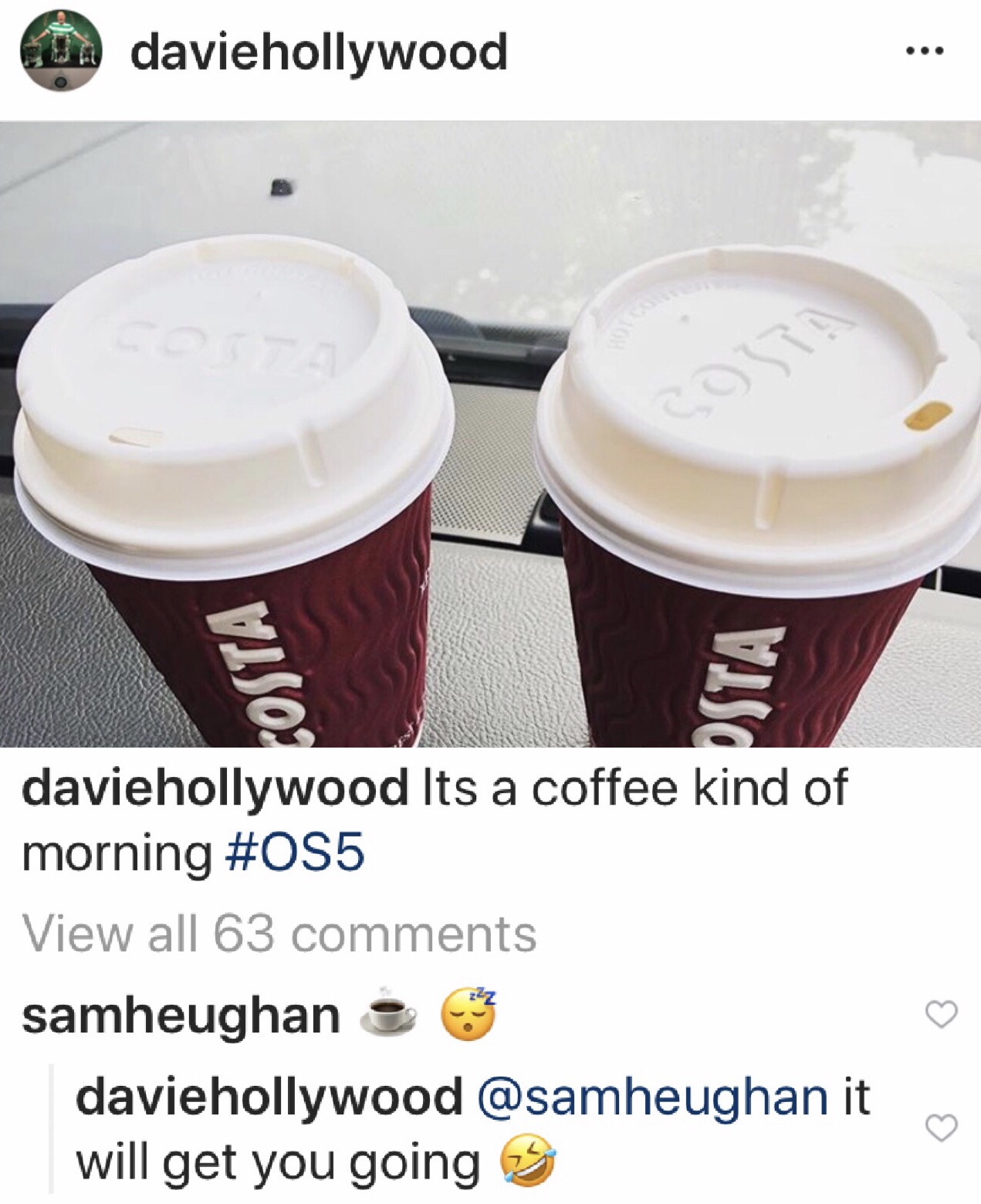 David A Stewart: daviehollywood Davie is Sam Heughan’s driver and, as well as his personal posts and great location photographs, his account has fun stuff about him and Sam traveling to and from work in all weathers and at all times of day. Coffee and chewing gum feature heavily!
