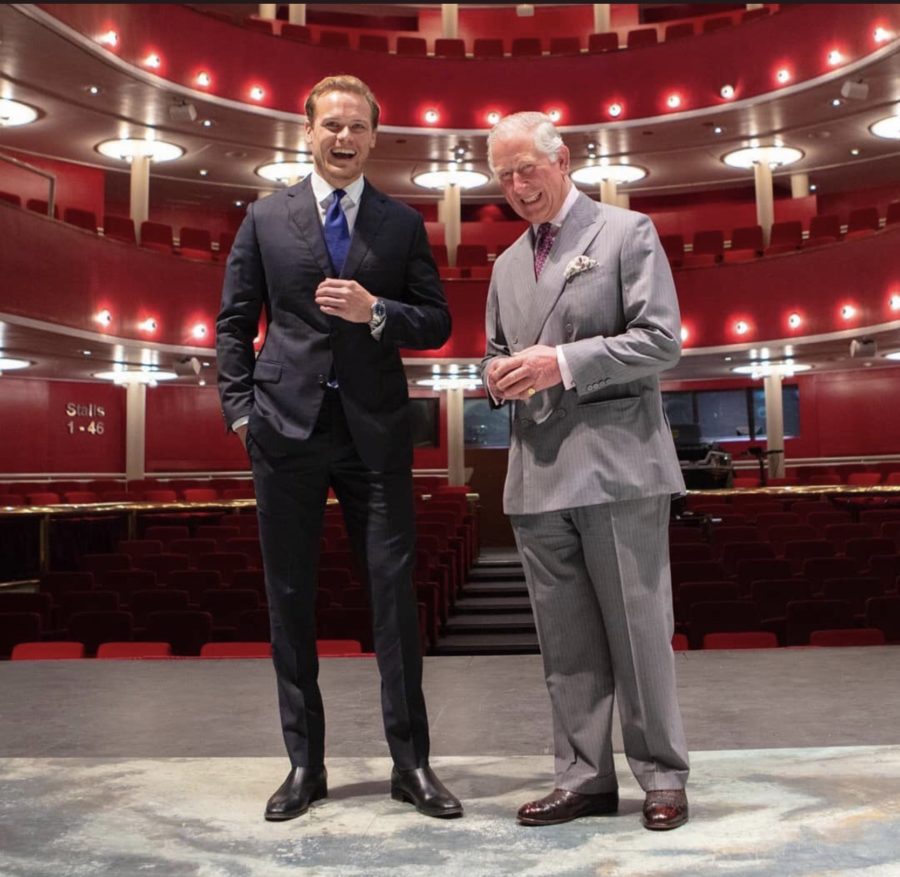 Sam let us know how tired he was at the end of a long week, but somehow still had the energy (superhuman?) to look marvelously stylish and at ease when he met the Prince at the Royal Conservatoire of Scotland.