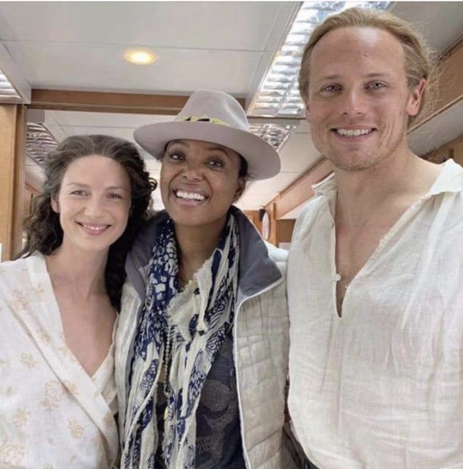 Actress and talk show host Aisha Tyler visited Sam and Caitriona at work one day.