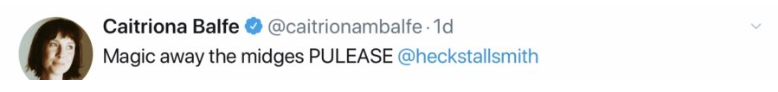 And finally, a wrap on a series of night shoots and Caitriona Balfe clearly does not like the midges. Anyone who has spent time in Scotland will surely agree on that.
