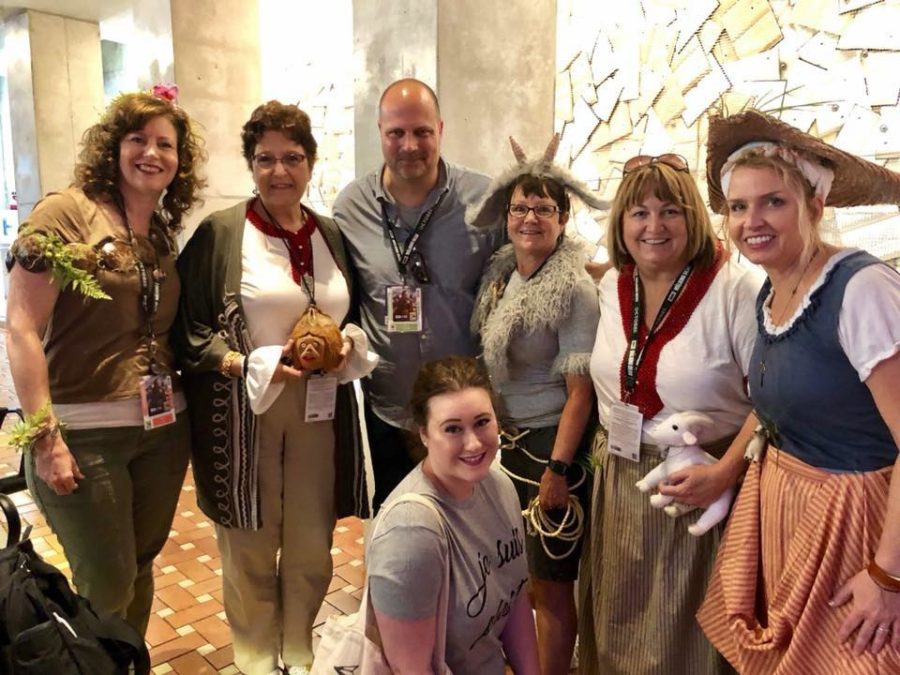 Some of the other Outlander ladies and me with Chris Parnell at the 2018 Outlander Fan Panel. They dressed up as Father Fogden and his goats!