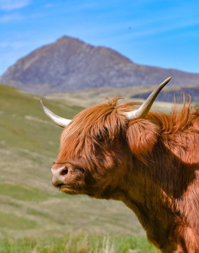 As you climb upwards along the String, you can look behind you and see the Machrie Moor below and just make out the stone circles there. But, it’s the climb down from the summit and views of the Glen Rosa that are truly striking. On a clear day, you can see right over to Ayrshire. There’s a lay-by for this viewpoint, so take a wide-angled lens with you to make the most of the stunning scenery! Along this stretch, the peak of Goat Fell rises so near you feel as if you can reach out and touch it. Lucky for us, there was also a herd of Heiland Coos along the side of the road just past the summit. They were posing for sure and we couldn’t resist a quick stop to snap their fabulous mugs.