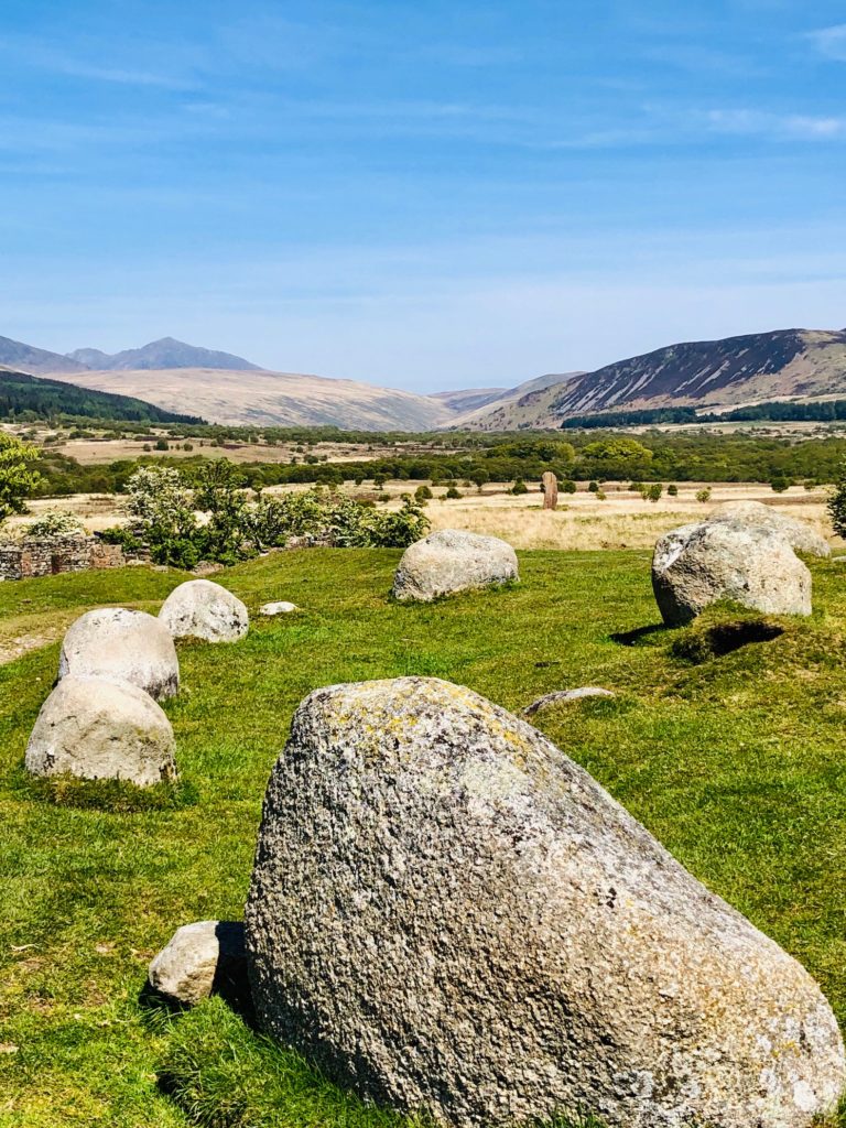 The moor itself is desolate but with crystal clear views of Glen Rosa and Goat Fell in the distance this day, which made the moments there even more magical and framed up some pretty special photo opportunities. It took me a while to get there but Machrie Moor quickly became one of my favorite stone circles I had seen in all my travels through Scotland. There is something about the desolation of the moor and the sense of wonderment as to how these stones were transported to this remote place. Add that to the magnificence of Arran’s highlands in the distance and you feel quite transformed. Oh, ancient people, why and how did you build these structures? I don’t think we will ever know the answer, which only adds to the ambiance of this stunning place. I tried touching the stones — not to see if I could time travel(!) — but to try to absorb some of the magic of this place. I think I might have been successful! The walk to the Machrie Stones needs to be on everyone’s Arran list!