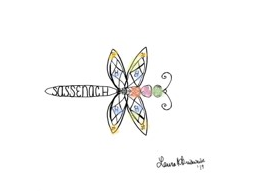 Orange at the wing tips is the alchemist symbol for mercury and represents Master Raymond. The lime green three dots on the two forward wings represent Claire, Jaime, and Frank. The blue symbol is actually the letters J and C for Jaime and Claire. The darker green in the head is the standing stones placed in different angles, some being connected. The pink is a triskelion representing two things: the old Gaelic fairy stories and Jaime’s three children, Brianna, Faith, and William. The orange in the center thorax is a star to represent the travels they go on: time travel, France, Scotland, the Carribbean, North Carolina/America.