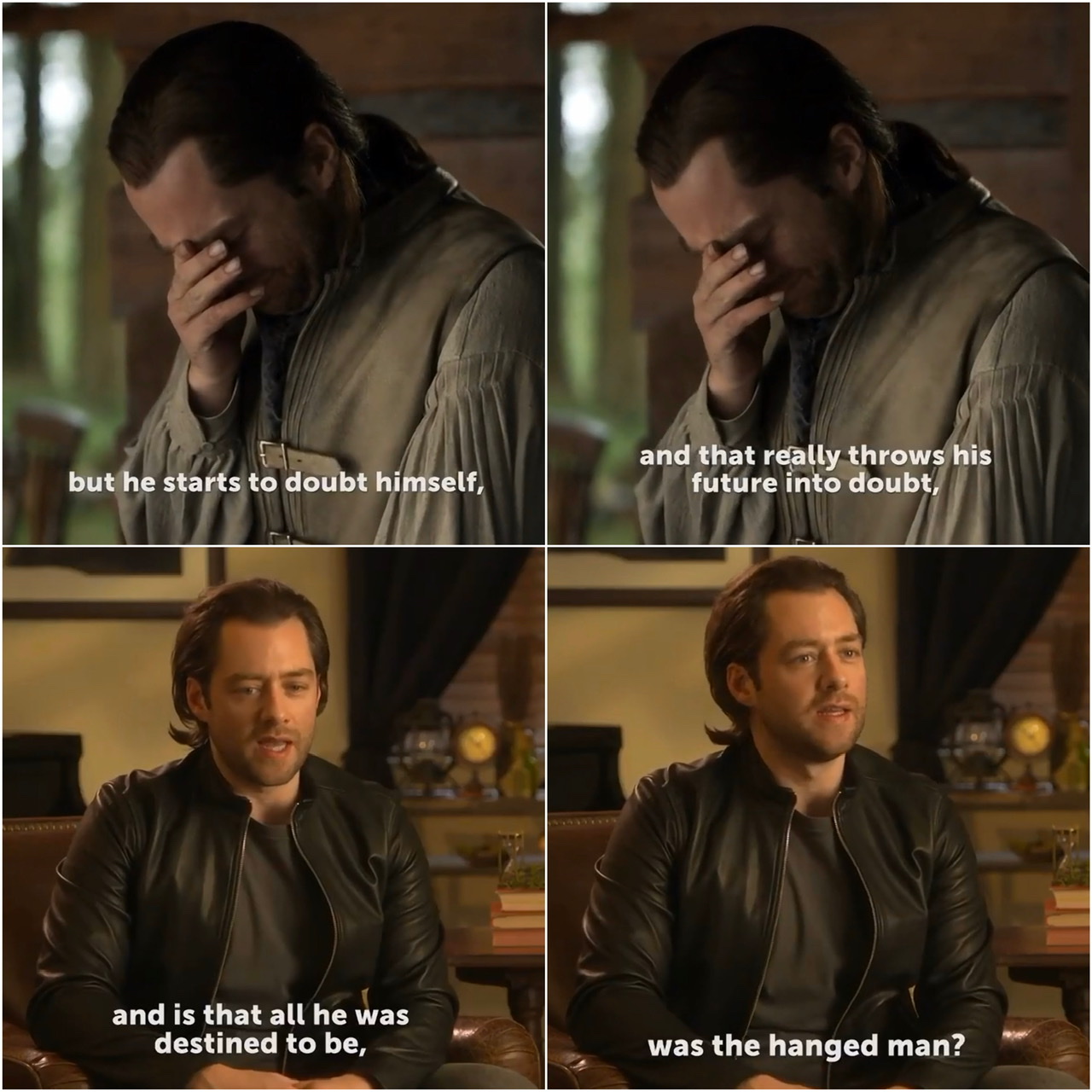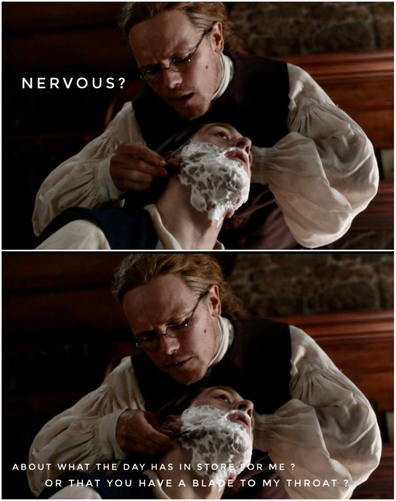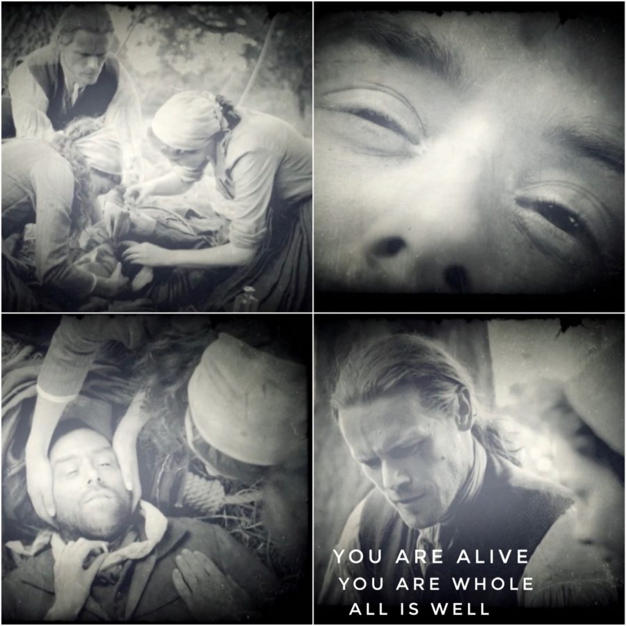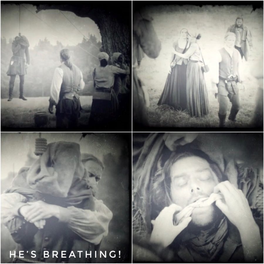 This episode explored sensitive mental health issues in a raw and realistic way. Many book reader fans were incensed that Roger or Ian would ever contemplate suicide. But, hey, aren’t we encouraged in this day and age to see mental health issues and crises not as personal weakness but as a response and a challenge to people who may need to reach out to others for support and guidance? This is what Roger and Ian do: they challenge, support and guide each other through their darkest moments. The writers, production team and actors used a powerful cinematic device and the theme of the hanged man to great effect. What a show!
