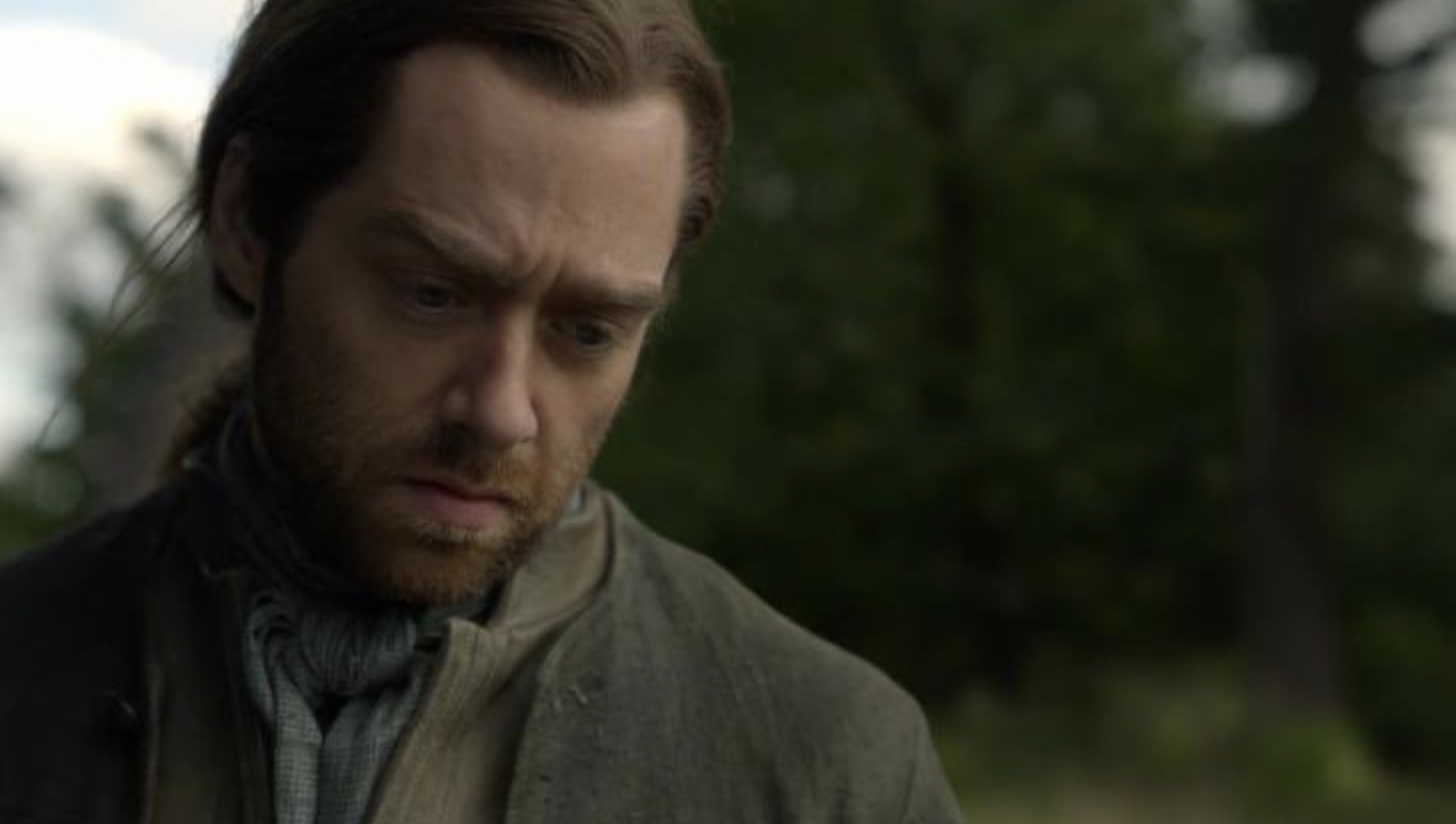 Of course that all goes terribly wrong and he is “accidentally” hanged by Governor Tryon, after being mistaken for one of the Regulators. We see Roger at the beginning of Outlander Episode 508, ”Famous Last Words,” as a seriously desolate man, all his fears and insecurities now drastically compounded by the trauma of violence, abuse and a near-death experience. And remember, this is the second time he’s endured most of that since he came through the stones.