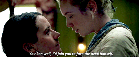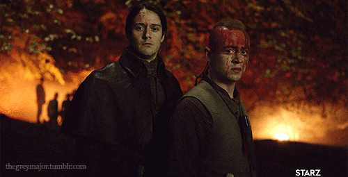 Season 4 writers also inserted a storyline for Fergus to assist Murtagh to escape capture, meet up in their rooms with Regulators and break out of prison. I believe they were looking to create more story to tie in the young Frasers, and it did have some moments of badassery for Fergus (which he certainly is). However, I personally disagreed with tying Fergus into the Regulator storyline because he would never take a side, Murtagh or no Murtagh, that would stand opposite Jamie. Other than that, it provided some nice moments for Fersali.