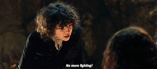 Seeing what Jamie has become—a broken shell of himself—crushes Fergus’ heart. After Jamie scolds him for touching a hidden gun, Fergus says he wants to be ready to fight and defend their home. Jamie tells him…